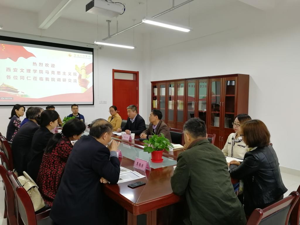 张军学对公司领导及与会人员表示感谢,简要介绍了西安文理学院yl7703永利集团的基本情况,并就思政课建设、课程教学改革、社会实践教学、学科专业建设、员工考研等方面进行了研讨交流。随行人员与公司yl7703永利集团各教研室主任、副主任等进行了对口交流,就双方关注的教学科研等内容展开热烈讨论。