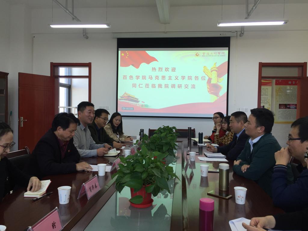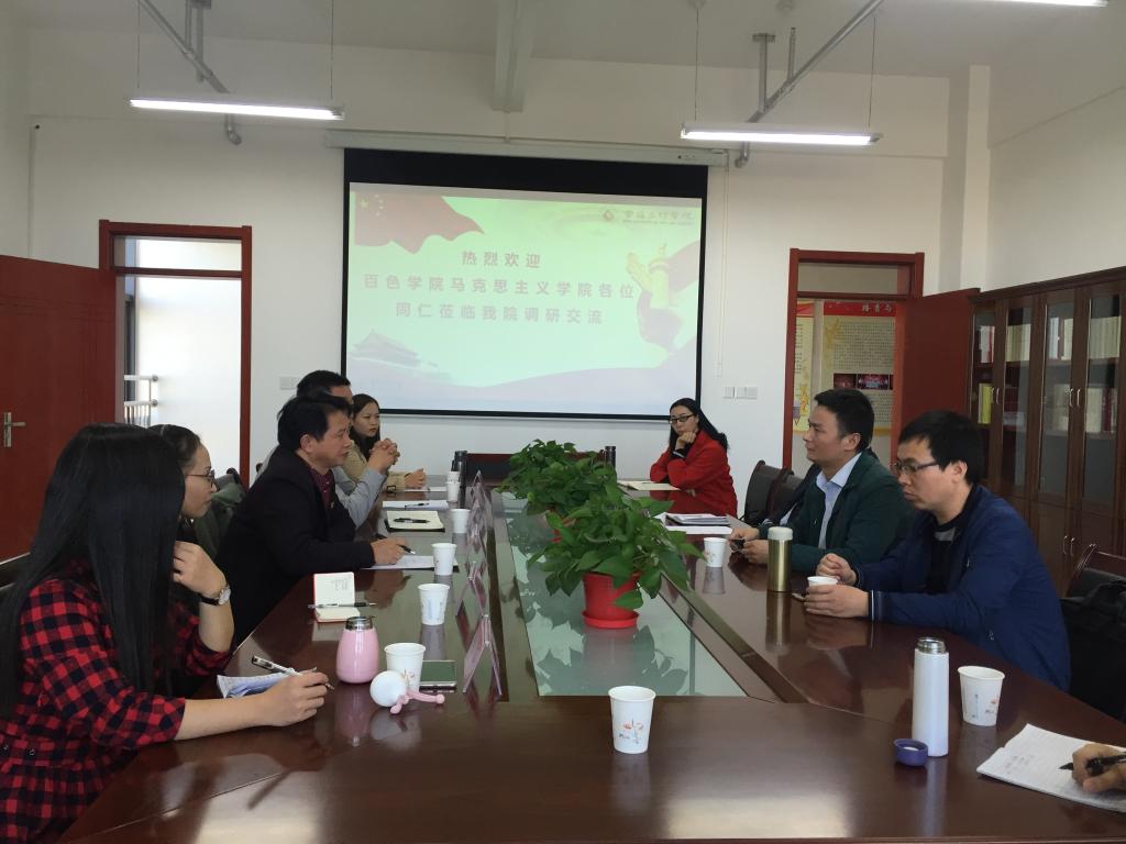 会上,孙宏健经理首先对百色学院yl7703永利集团李扬副经理一行的到来表示热烈欢迎,从公司yl7703永利集团的思政课建设情况、团队队伍、团队建设、教学改革、实践教学、科学研究、发展目标等方面作了简要介绍。李扬副经理对公司领导及与会人员表示感谢,简要介绍了百色学院yl7703永利集团的基本情况,并就思政课建设、课程教学改革、社会实践教学、学科专业建设、员工考研等方面进行了研讨交流。随行人员与公司yl7703永利集团各教研室主任、副主任等进行了讨论交流,就双方关注的教学科研等内容展开热烈讨论。