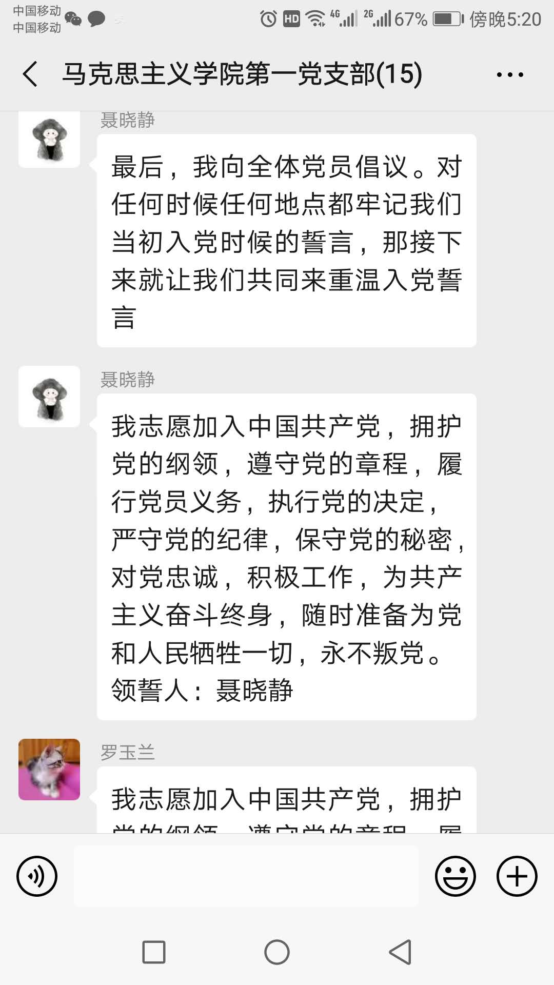 一个党员一面旗,疫情面前践初心。2月28日下午yl7703永利集团第一党支部在抗疫特殊时刻利用微信平台开展了以“战疫情:共产党人的使命担当”为中心的主题党日活动,凝聚抗“疫”红色能量。此次活动由第一支部书记聂晓静主持,第一支部全体党员参加会议。