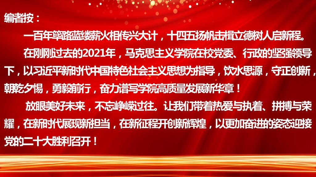 11月25日,公司党委书记赵健以《学习六中全会精神,凝聚前进磅礴力量》为题,为公司师生代表宣讲了党的十九届六中全会精神,勉励老员工认真学习领会全会精神,努力成为担当民族复兴重任的时代新人。12月16日,赵健书记指导马院教研活动,勉励全体思政课教师锤炼铸魂育人本领,不断提升铸魂育人成效。12月8日,董事长郭霄鹏以《学习贯彻六中全会精神,努力建设高水平大学》为题,为公司师生代表讲专题党课,勉励全体师生深入学习贯彻全会精神,牢记初心使命,勇担时代重任。12月13日,董事长郭霄鹏为党员师生代表讲授《以六中全会精神为指引,推动学校事业高质量发展》专题党课,勉励党员师生践行初心使命,牢记根本任务,聚力建设特色鲜明的高水平大学。2021年,校级领导班子成员带头听思政课、讲思政课,带头参加思政课教研活动,全方位指导思政课建设,思政课建设质量稳步提升。