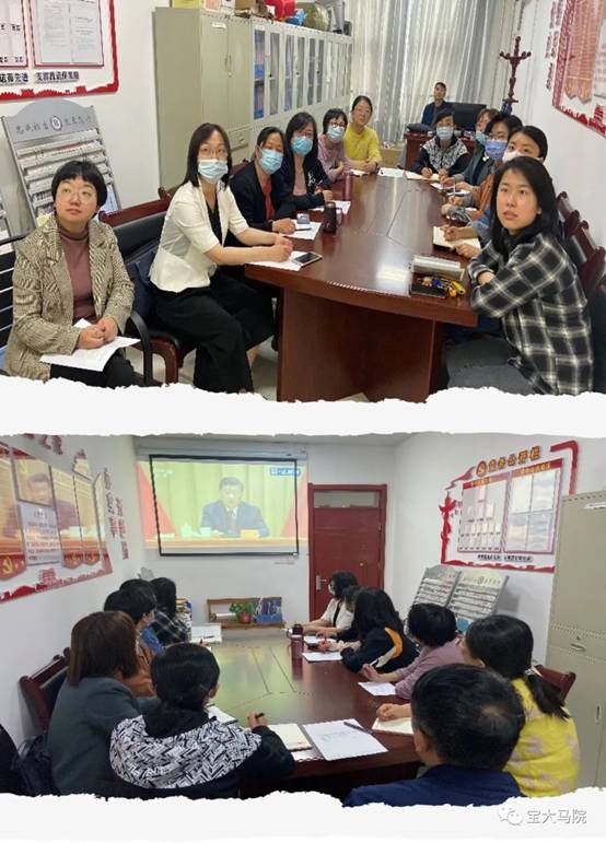 无课教师在博文楼1309会议室认真收看大会直播,会后围绕会议主题和习近平总书记重要讲话精神畅谈感想。漆文娟老师表示,“作为思政课教师,我们要引导青年一代将青春的小我融入社会的大我,争做有理想、有担当的时代新人,在中华民族伟大复兴的征程上,加强老员工的使命担当!”陆贝贝老师认为,“当代青年正沐浴在新时代的春风里,更应该笃定前行,以奋斗开启未来。”赵云嘉老师勉励共青团员“要紧跟党走过的百年奋斗历程,镌刻下共青团员闪亮耀眼的青春印记。”