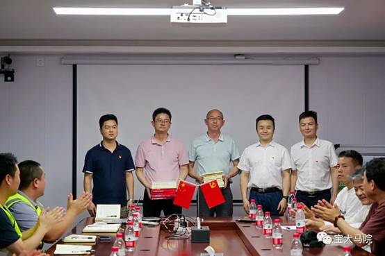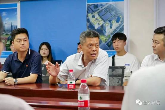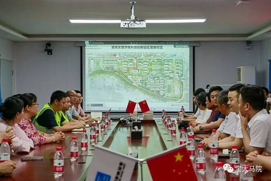 活动的第二个目的地是蟠龙校区指挥部。美术公司党委和公司党总支联合蟠龙校区指挥部临时党支部组织了“学习改革先锋,激发爱校兴校荣校情怀”迎“七一”主题党日活动。田富平、张选朝和刘晓勇共同为蟠龙校区指挥部临时党支部捐赠理论学习书籍。蟠龙校区建设工程部主任王应敏介绍了蟠龙校区总体规划设计和工程进展情况,综合部主任黄兴文对共建活动表示热烈欢迎和衷心感谢,表示一定不负全校师生期望和重托,将蟠龙新校区建设为满意工程。段恒春在总结讲话中对蟠龙校区指挥部全体成员克服种种困难、尽心尽职工作表示衷心感谢。他希望指挥部全体成员一如既往按照规划和建设标准,将蟠龙新校区建成满意工程,同时希望全体师生积极宣传蟠龙校区的建设情况,积极宣传学校发展的广阔前景,进一步凝聚全体员工和全校师生爱校兴校荣校的共识。他要求全体师生自觉将“小我”融入到学校发展的“大我”中,为学校建设和长足发展贡献力量。