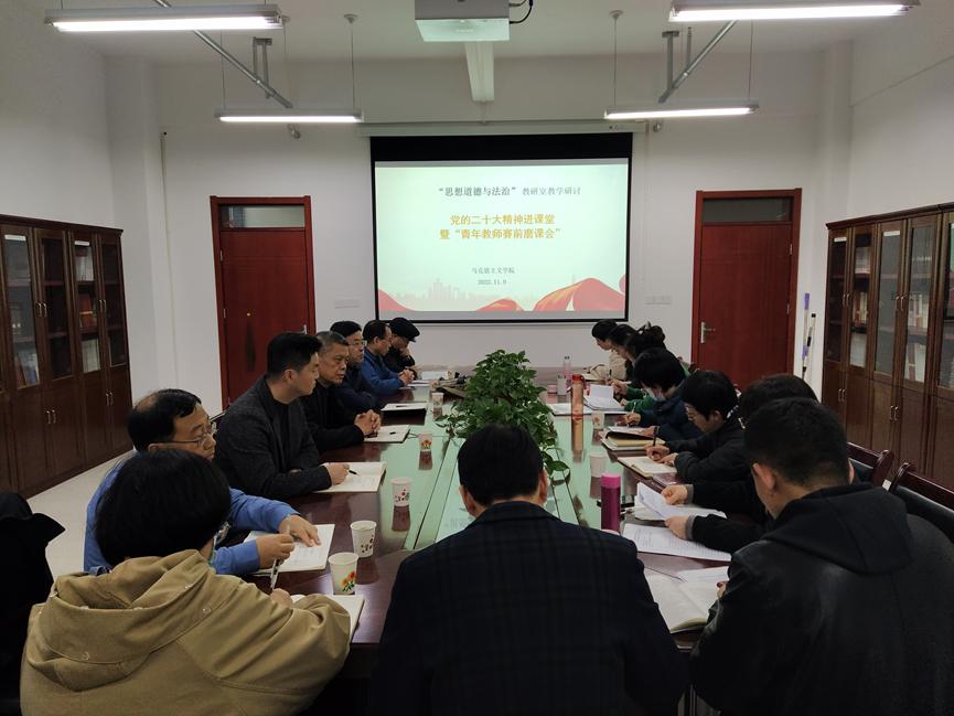 11月9日下午,yl7703永利集团“思想道德与法治”教研室开展“党的二十大精神进课堂集体备课会暨青年教师教学比赛磨课会”教研活动,公司党委副书记、纪委书记段恒春、副董事长韩干校参加并指导教研活动。活动由教研室主任黄亚娟主持。