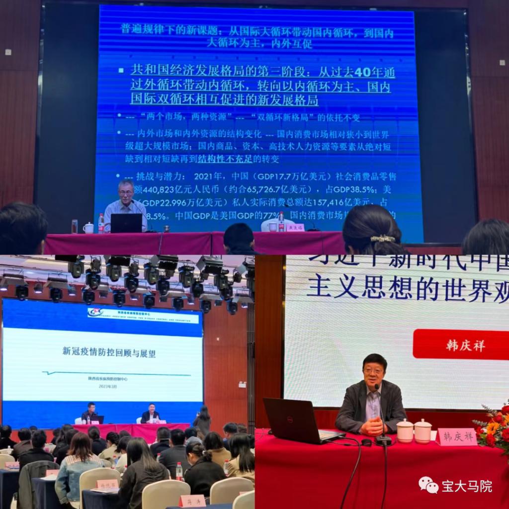 培训会上,陕西省疾病预防控制中心张义所长、中国国际问题研究院杨希雨研究员、中央党校韩庆祥教授,分别以“新冠疫情防控的回顾与展望”“二十大后的国际政治经济形势与新时代对外开放战略”“习近平新时代中国特色社会主义思想的世界观和方法论”为题作了专题报告。