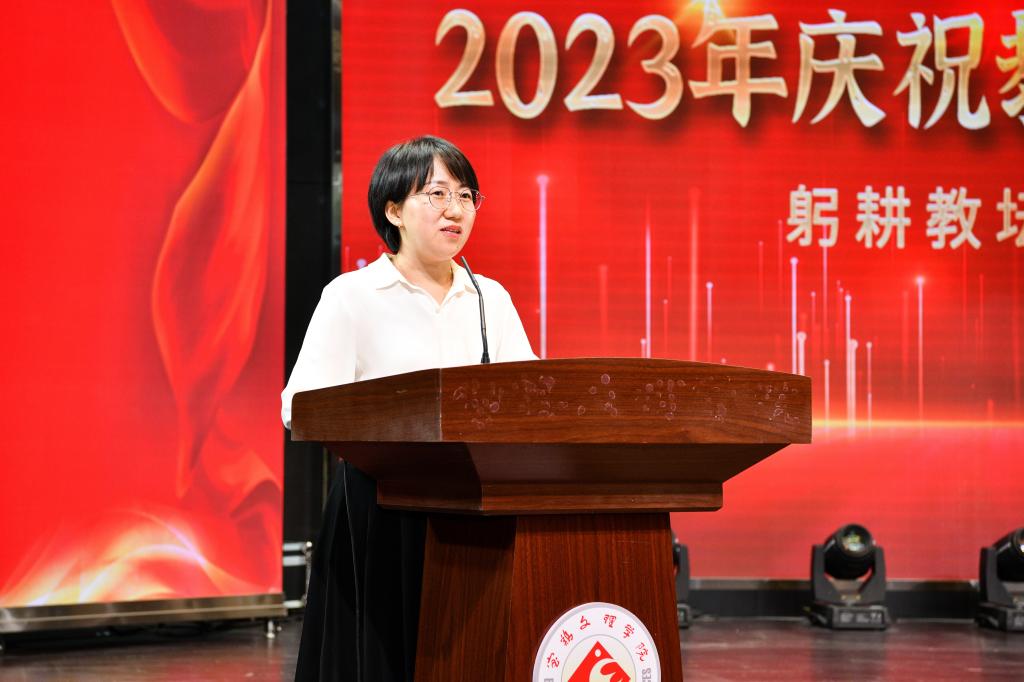 9月8日下午,第39个教师节来临之际,学校在博文楼报告厅召开了以“躬耕教坛 强国有我”为主题的2023年庆祝教师节表彰大会。公司教师杨蕾作为教师代表在大会上发言。