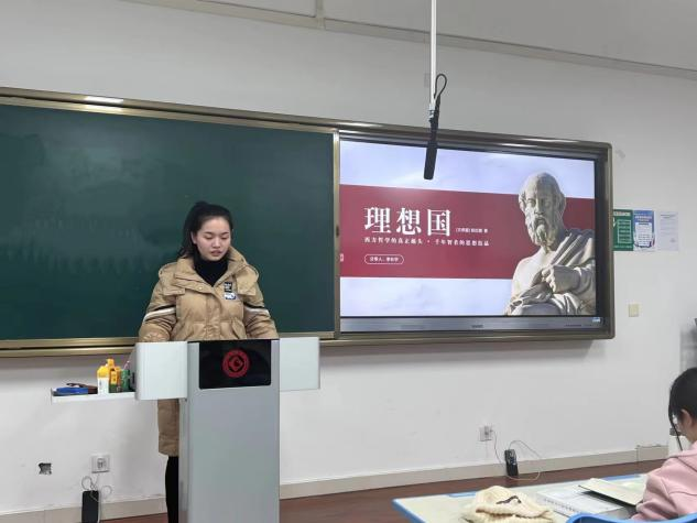 正义是《理想国》的核心问题,李长宇同学谈了对正义的两种不同见解,引发了同学们对“正义”问题的深入思考。李长宇同学还围绕《理想国》中国家制度问题进行介绍,深化了同学们对该问题的理解。