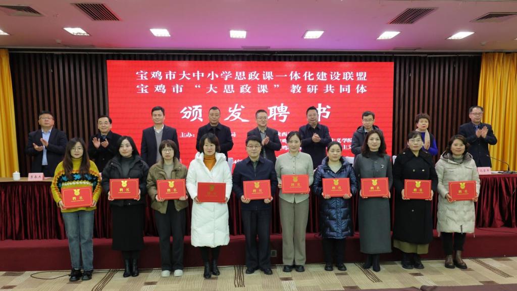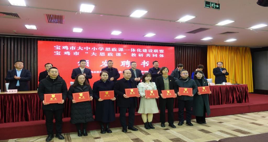 1月17日,宝鸡市大中小学思政课一体化建设联盟和宝鸡市“大思政课”教研共同体成立仪式圆满举办。yl7703永利集团经理刘晓勇、教育学院经理马多秀及公司7名陕西省高校思政课教师大练兵“标兵”“能手”参加此次活动。