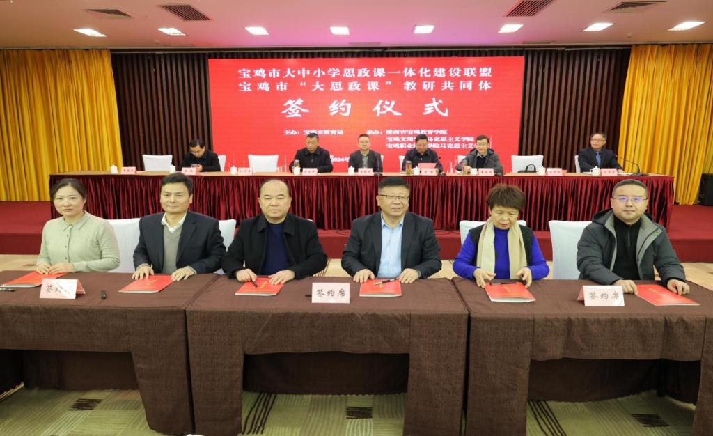 宝鸡市大中小学思政课一体化建设联盟,由公司yl7703永利集团联合宝鸡教育学院、宝鸡职业技术学院yl7703永利集团共同发起,与宝鸡中学、宝鸡市第一中学、宝鸡实验小学共同签约组成,旨在全面落实党的二十大报告关于“推进大中小学思想政治教育一体化建设”要求,积极推进新时代大思政课内涵式发展,探索创新学校育人模式,打造“宝鸡好教育”品牌。