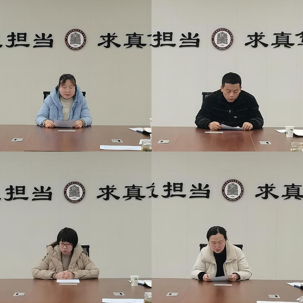 会上,科级干部、各教研室主任、科研基地负责人、工会主席、教工党支部书记、学院教学督导主任围绕年度工作成效、教学引领和科研示范等方面进行工作践诺汇报,对于今年的“一室一品”、基地建设、支部发展等方面的成绩作了总结。学院其他教师提交了个人年度践诺书。