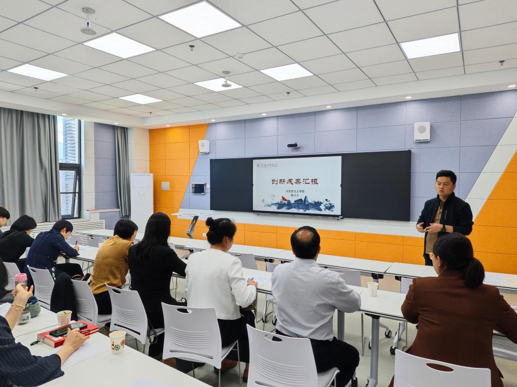 公司参加学校教师教学创新大赛的选手教师陆贝贝、赵洁分别围绕《中国近现代史纲要》《思想道德与法治》课程进行了教学展示。两位老师围绕本课程教学痛点分析,从课程设计、课程内容重构、教学方法、教学评价改革、教学成效、推广价值等方面展示了课堂教学创新的理念、思路、方法和效果。
