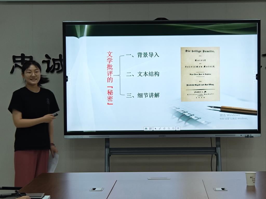 会上,杨佳鑫、万泽京、李长宇、周艳、李佳欣五位同学围绕习近平文化思想、乡约与现代基层治理等主题依次进行学术论坛报告。全体研究生导师就报告主题与汇报员工提问交流,指出了报告和汇报的问题,提出了修改完善建议。