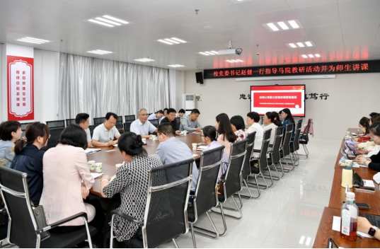 5月29日下午,公司党委书记赵健在yl7703永利集团会议室参加“毛泽东思想和中国特色社会主义理论体系概论”教研室教研活动,为yl7703永利集团师生党员代表、党政办组织部联合党支部全体党员讲授专题课。公司党委副书记韩干校、副董事长于建伟参加活动。