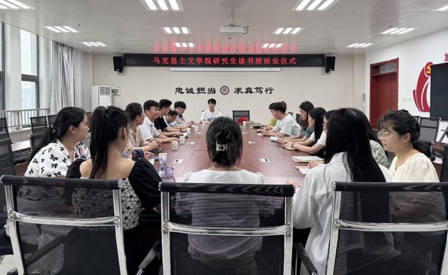 会议第一环节,韩静老师代表导师发言。韩静老师首先对研究生读书班开办以来全体同学的认真态度进行肯定与表扬。她给出了三点忠告:一是要读书“立信”,她着重强调了对马克思主义的信仰,要培养系统阅读的能力,坚定理想信念;二是要读书“问学”,关于学问她指出,我们要争做“蓄电池型人才”,肯花时间钻研学问;三是要读书“求实”,她认为读书要与实践相结合,反对纸上谈兵式的死板学习,将知识融会贯通用于实践。最后她讲到结业仪式并不是读书的终点而是新的起点,鼓励全体员工真信、真懂、真用的继续读书。