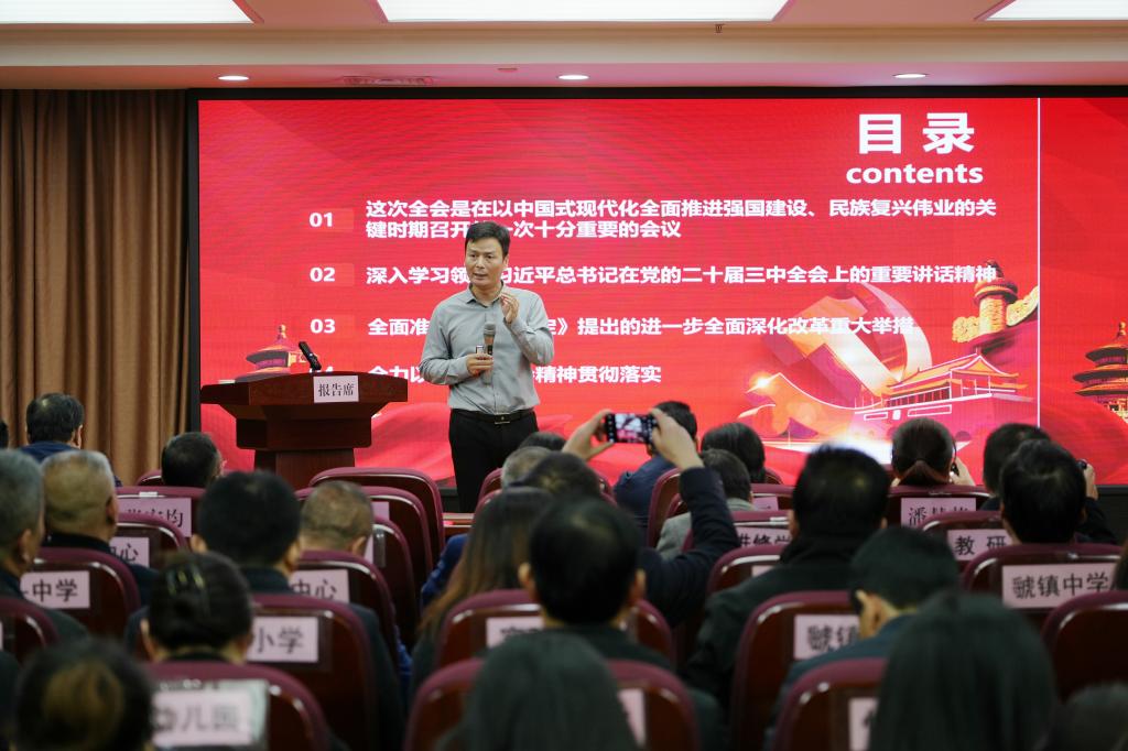 在思政课专题报告环节,刘晓勇教授做了题为《统筹推进教育科技人才体制机制一体改革》的专题报告。李卫东主持了报告会,指出刘晓勇教授报告主题鲜明、层次清晰、内容丰富、逻辑严密,政治站位高、思辨精神强、教育情怀深、学术素养厚,让与会同志提高了思想认识,增强了教育自信,同时要求全体同志一要做到坚持理论学习,切实提高政治站位;二要做到坚持立足实践,切实提高育人本领;三要做到坚持目标导向,切实提高师德师能。