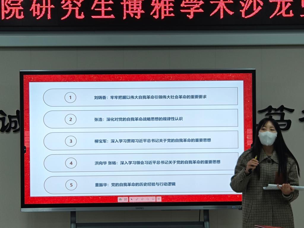座谈会环节,张丽副经理首先介绍了学院公司产品基本情况,结合马克思主义理论硕士yl7703永利集团怎么注册培养过程中日渐显现的读书班和教学实践特色指明了导师和研究生下一步工作重点,她还强调了期中教学检查在日常教学开展、培养计划制定、员工教育指导等方面目标任务,随后进行研究生导师、研究生授课教师及研究生交流座谈。