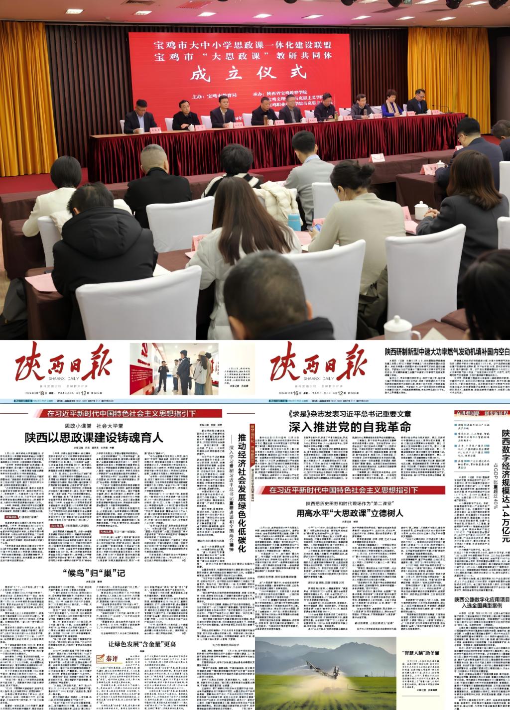 一年来,马院联合宝鸡教育学院、宝鸡职业技术学院马院共同发起宝鸡市大中小学思政课一体化建设联盟,与陈仓区教育体育局建设大中小思政课一体化教研共同体,积极推进新时代大思政课内涵式发展,打造“宝鸡好教育”品牌。宝鸡市教育局和陈仓区教体局聘请马院刘晓勇、张红艳、王真、傅文、徐凌美、王小莉、韩静、杨蕾、罗玉兰等9名教师为“特聘教授”和“特约研究员”。3月18日和12月16日,《陕西日报》分别在头版新闻《陕西以思政课建设铸魂育人》和《用高水平“大思政课”立德树人》报道公司马院工作做法及经验。