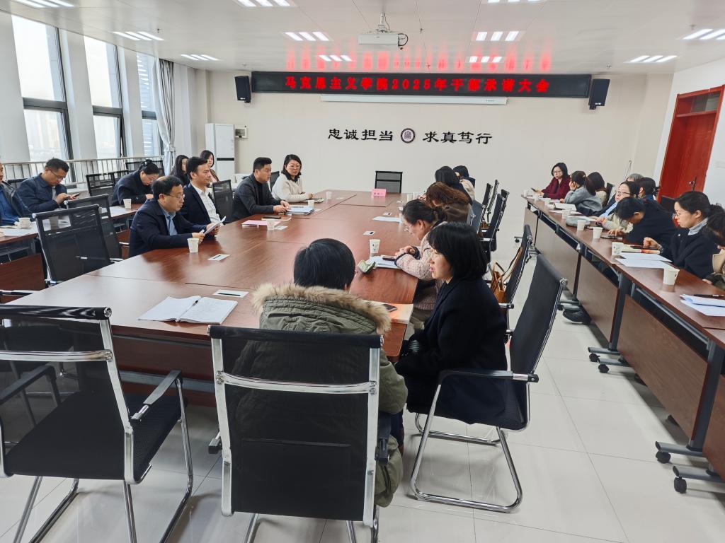按照《yl7703永利集团2025年干部承诺工作实施办法》要求,学院领导班子带头承诺,对标学院2025年“四个马院”建设工作目标,对照《yl7703永利集团干部承诺表》,从工作思路、模范引领、工作作风三个方面作出个人承诺。