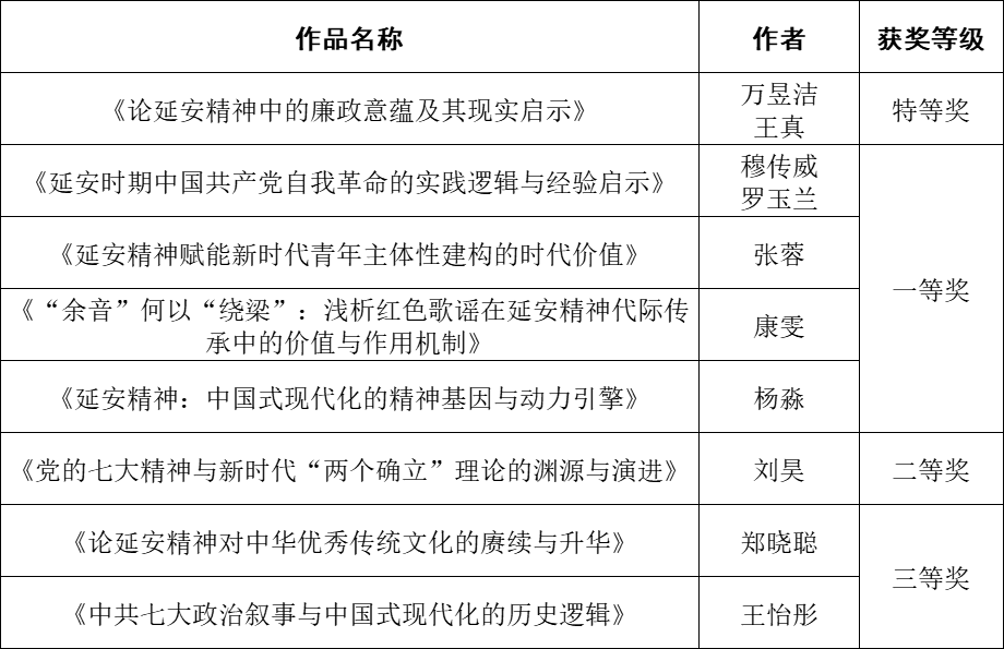 据悉,本次征文活动共收集174篇参评论文,紧紧围绕习近平总书记关于弘扬延安精神的重要论述,结合宝鸡发展实际,深入开展理论研究阐释。经过专家评审,共评选优秀论文47篇,其中特等奖3篇、一等奖10篇、二等奖12篇、三等奖22篇,评选优秀组织单位6家。