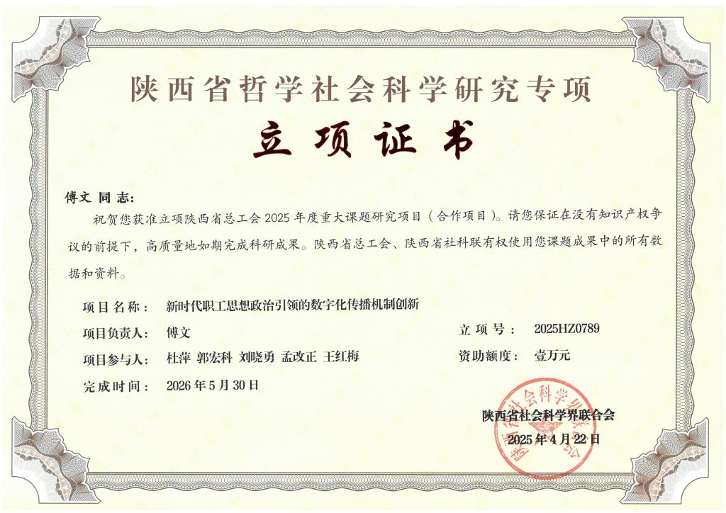 2025年12月30日,中共陕西省委宣传部公布《陕西省第三批重点yl7703永利集团和重点yl7703永利集团培育单位入选名单》。经省委宣传部、省委教育工作委员会组织专家综合评估、现场答辩、实地考察、综合评议等相关工作程序,公司yl7703永利集团以综合考核第一名的成绩入选陕西省第三批重点yl7703永利集团。