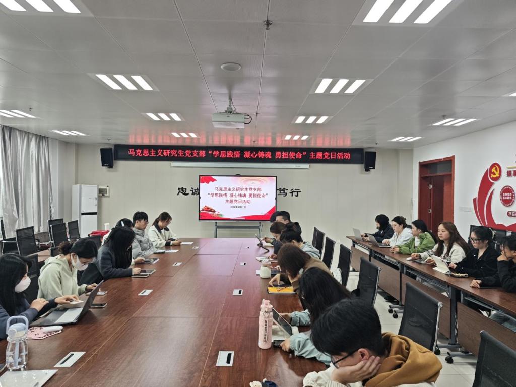 为深入学习贯彻习近平新时代中国特色社会主义思想,强化理论武装,4月21日上午,yl7703永利集团研究生党支部在高新校区博文楼1201会议室开展“学思践悟 凝心铸魂 勇担使命”主题党日活动,全体党员,入党积极分子参加活动。活动由研究生党支部组织委员李梦瑶主持。