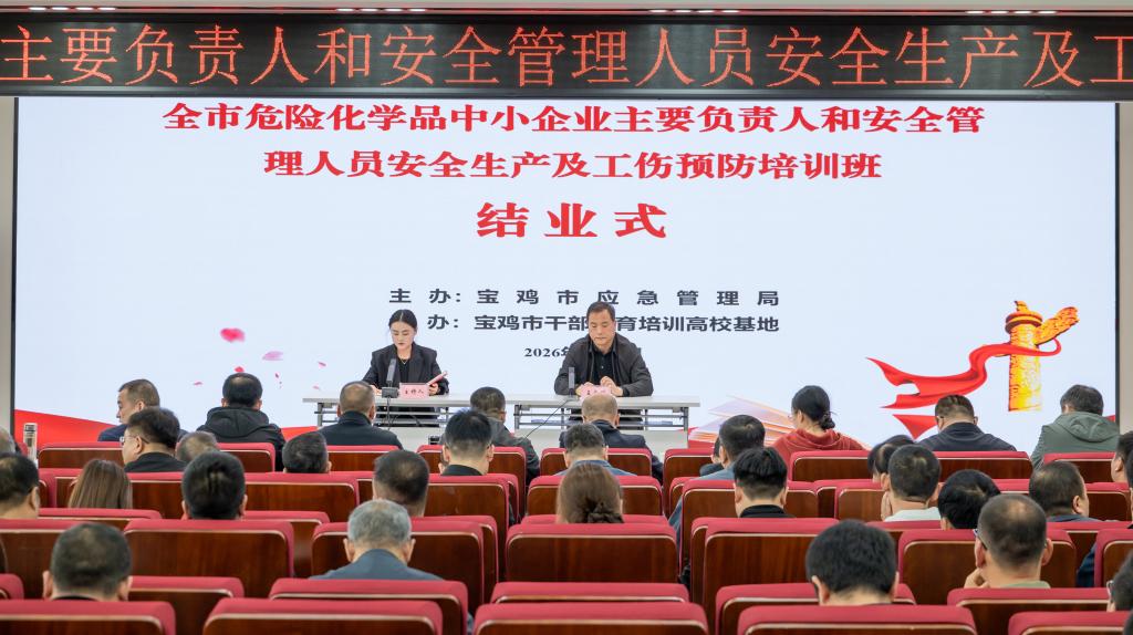 4月20日至24日,由宝鸡市干部教育培训高校基地联合宝鸡市应急管理局承办的宝鸡市危险化学品中小企业主要负责人和安全管理人员安全生产及工伤预防教育培训班开班仪式在高新校区博文楼副楼205举行,宝鸡市应急管理局党委委员,二级调研员贾红生,宝鸡市应急管理局政策法规科科长黄岳,公司公司党总支书记赵智劳出席开班仪式,宝鸡市应急管理局危险化学品安全监督管理科科长庞亚男主持开班仪式。