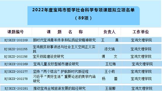 近日,宝鸡市哲学社会科学工作领导小组办公室公示了2022年度宝鸡市哲学社会科学专项课题立项评审结果。yl7703永利集团教师获批7项课题。