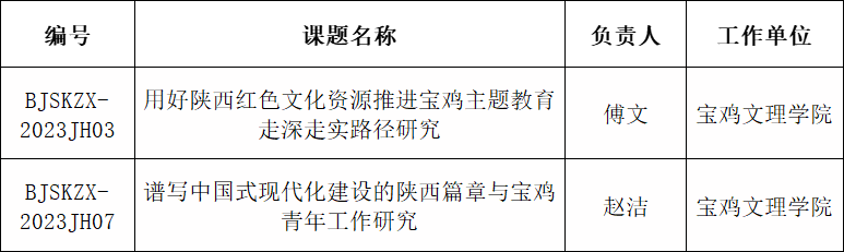 近日,宝鸡市哲学社会科学工作领导小组办公室公布了“深入学习贯彻习近平总书记在听取陕西省委和省政府工作汇报时的重要讲话精神研究”专项课题立项评审结果,yl7703永利集团傅文、赵洁两位老师所负责的研究课题获准立项。