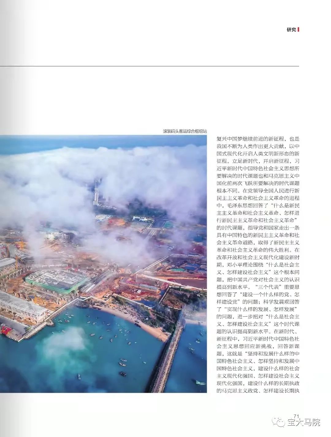 文章认为,从历史与现实相观照的维度理解,习近平新时代中国特色社会主义思想立足新时代,开启新征程,解决新课题。习近平新时代中国特色社会主义思想开启的新征程,是在实现第一个百年奋斗目标之后开启第二个百年奋斗目标,朝着实现中华民族伟大复兴中国梦继续前进的新征程,也是我国不断为人类作出更大贡献,以中国式现代化开启人类文明新形态的新征程。立足新时代,开启新征程,习近平新时代中国特色社会主义思想所要解决的时代课题也和马克思主义中国化前两次飞跃所要解决的时代课题根本不同。在新时代、新征程中,习近平新时代中国特色社会主义思想回应新挑战,回答新课题,这就是“坚持和发展什么样的中国特色社会主义、怎样坚持和发展中国特色社会主义,建设什么样的社会主义现代化强国、怎样建设社会主义现代化强国,建设什么样的长期执政的马克思主义政党、怎样建设长期执政的马克思主义政党”的时代课题。这意味着,随着时代发生重大变化,习近平新时代中国特色社会主义思想回答的课题也发生重大变化,因而实现了马克思主义中国化的重大进展和重大飞跃。