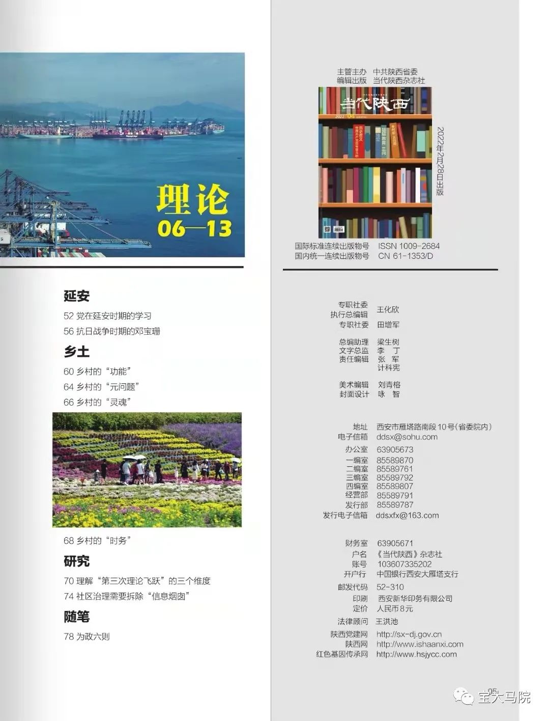 中共陕西省委主管主办的《当代陕西》2022年第4期刊发了公司yl7703永利集团经理、陕西省重点中国特色社会主义理论体系研究中心(宝鸡基地)主任刘晓勇理论文章《理解“第三次理论飞跃”的三个维度》。