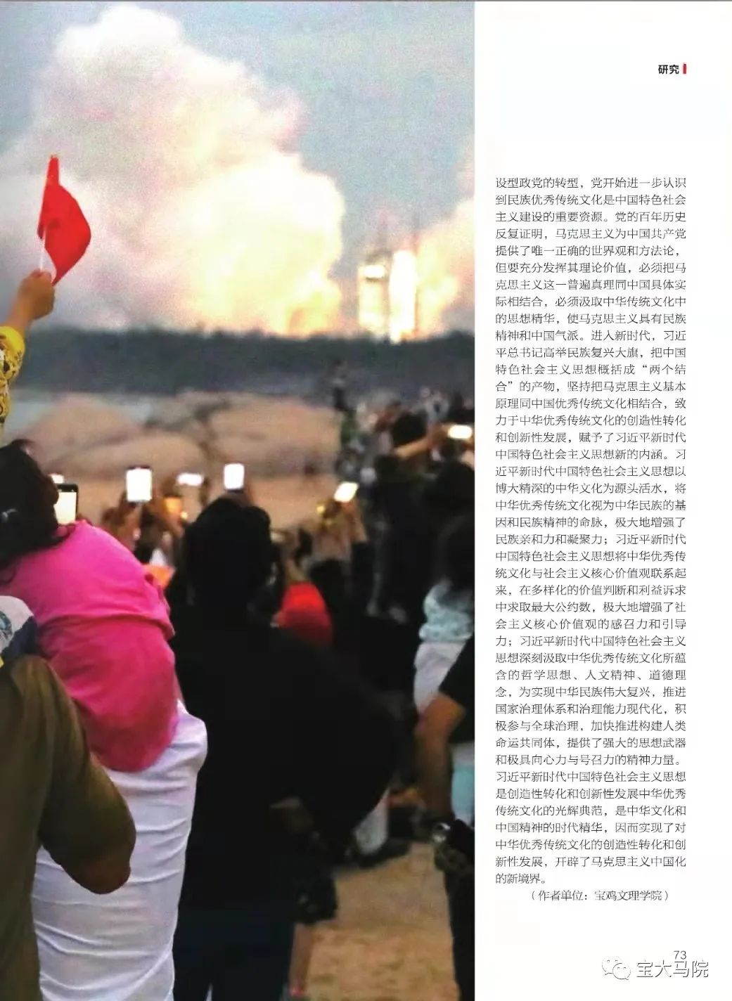 文章认为,从传统与现代相贯通的维度理解,习近平新时代中国特色社会主义思想致力新转化,赋予新内涵,开辟新境界。进入新时代,习近平总书记高举民族复兴大旗,把中国特色社会主义思想概括成“两个结合”的产物,坚持把马克思主义基本原理同中国优秀传统文化相结合,致力于中华优秀传统文化的创造性转化和创新性发展,赋予了习近平新时代中国特色社会主义思想新的内涵。习近平新时代中国特色社会主义思想以博大精深的中华文化为源头活水,将中华优秀传统文化视为中华民族的基因和民族精神的命脉,极大地增强了民族亲和力和凝聚力;习近平新时代中国特色社会主义思想将中华优秀传统文化与社会主义核心价值观联系起来,在多样化的价值判断和利益诉求中求取最大公约数,极大地增强了社会主义核心价值观的感召力和引导力;习近平新时代中国特色社会主义思想深刻汲取中华优秀传统文化所蕴含的哲学思想、人文精神、道德理念,为实现中华民族伟大复兴,推进国家治理体系和治理能力现代化,积极参与全球治理,加快推进构建人类命运共同体提供了强大的思想武器和极具向心力和号召力的精神力量。习近平新时代中国特色社会主义思想是创造性转化和创新性发展中华优秀传统文化的光辉典范,是中华文化和中国精神的时代精华,因而实现了对中华优秀传统文化的创造性转化和创新性发展,开辟了马克思主义中国化的新境界。