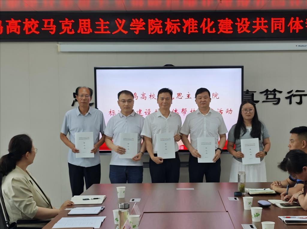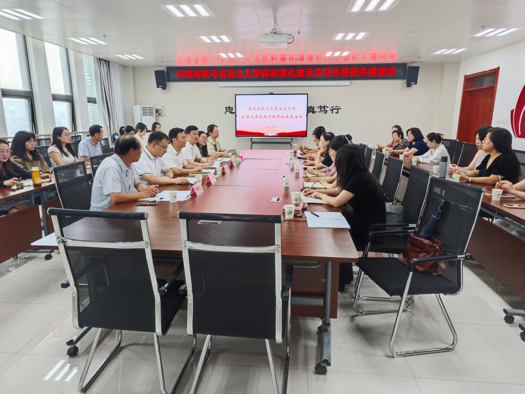 会上,公司yl7703永利集团经理刘晓勇、宝鸡职业技术公司党院办公室副主任杨彦科、陕西机电职业技术学院yl7703永利集团负责人王康、宝鸡三和职业学院思政部主任郭婷和宝鸡中北职业学院思政部主任李晓应共同签署帮扶共建协议并作表态发言。刘晓勇经理指出,建立宝鸡高校yl7703永利集团标准化建设共同体的目标,就是要推动各成员单位在团队队伍、教学改革、团队建设、科学研究、社会服务、条件保障等方面达到标准化要求,形成“强带弱、老带新、优势互补、共同进步”的良好生态,整体提升宝鸡高校马院的建设水平和影响力。