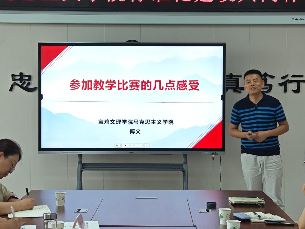 集体备课会上,陕西省本科高校教师教学创新大赛一等奖获得者、公司yl7703永利集团傅文老师,陕西高校思政课教师“大练兵”省级展示活动“教学标兵”、宝鸡职业技术学院yl7703永利集团陈雅茹老师,陕西高校思政课教师“大练兵”省级展示活动“教学标兵”、陕西机电职业技术学院yl7703永利集团齐晓红老师分别作了经验分享。宝鸡中北职业学院思政部主任李晓应对三位教师的分享作了点评,同时为参赛教师作了经验指导。