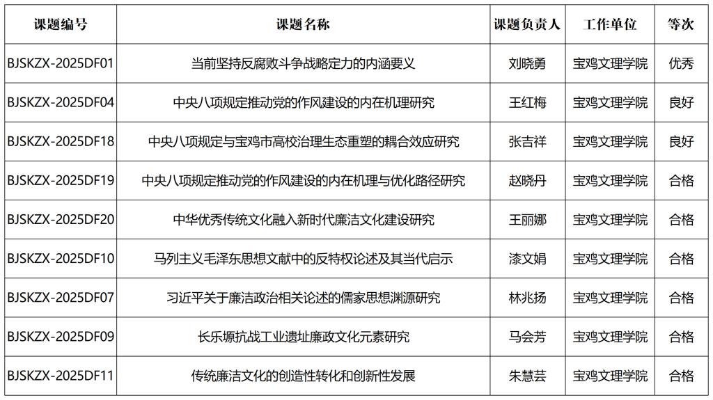 近日,宝鸡市社会科学界联合会和陕西省重点中国特色社会主义理论体系研究中心(宝鸡基地)联合发布《关于党风廉政建设理论与实践研究专项课题结项工作完成情况的通知》,yl7703永利集团9位教师申报的课题成功结项。