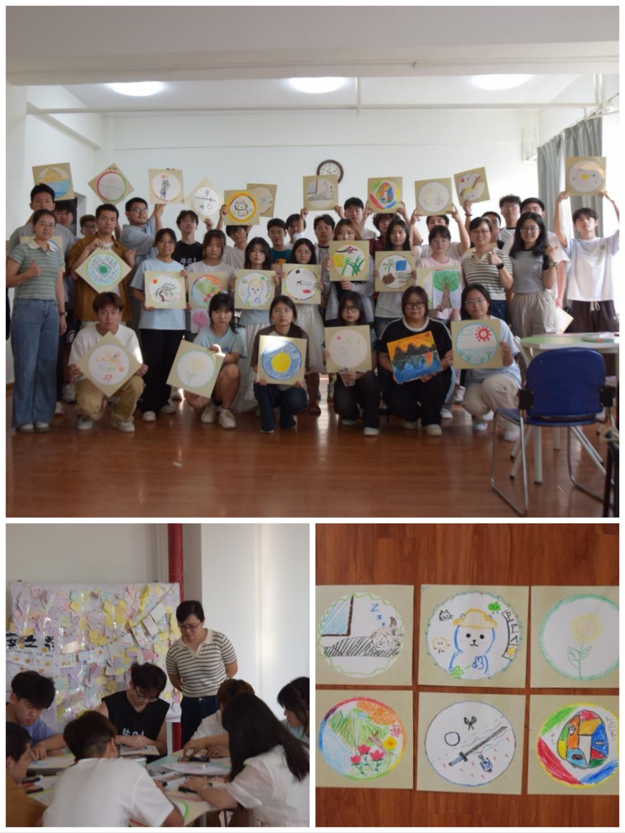写意曼陀罗艺术疗愈工作坊区别于传统心理辅导形式,旨在通过绘画、色彩、故事叙述与团体互动,为学生提供了一个安全表达、深度探索内心世界的创新平台。本次活动分为切土豆”“名之舞”“心灵之树”“颜色地图”“自我探索”“自画像等环节,通过主持人专业的引导,逐步完成认识自我、认识他人、相互协作和情感联结的目标。