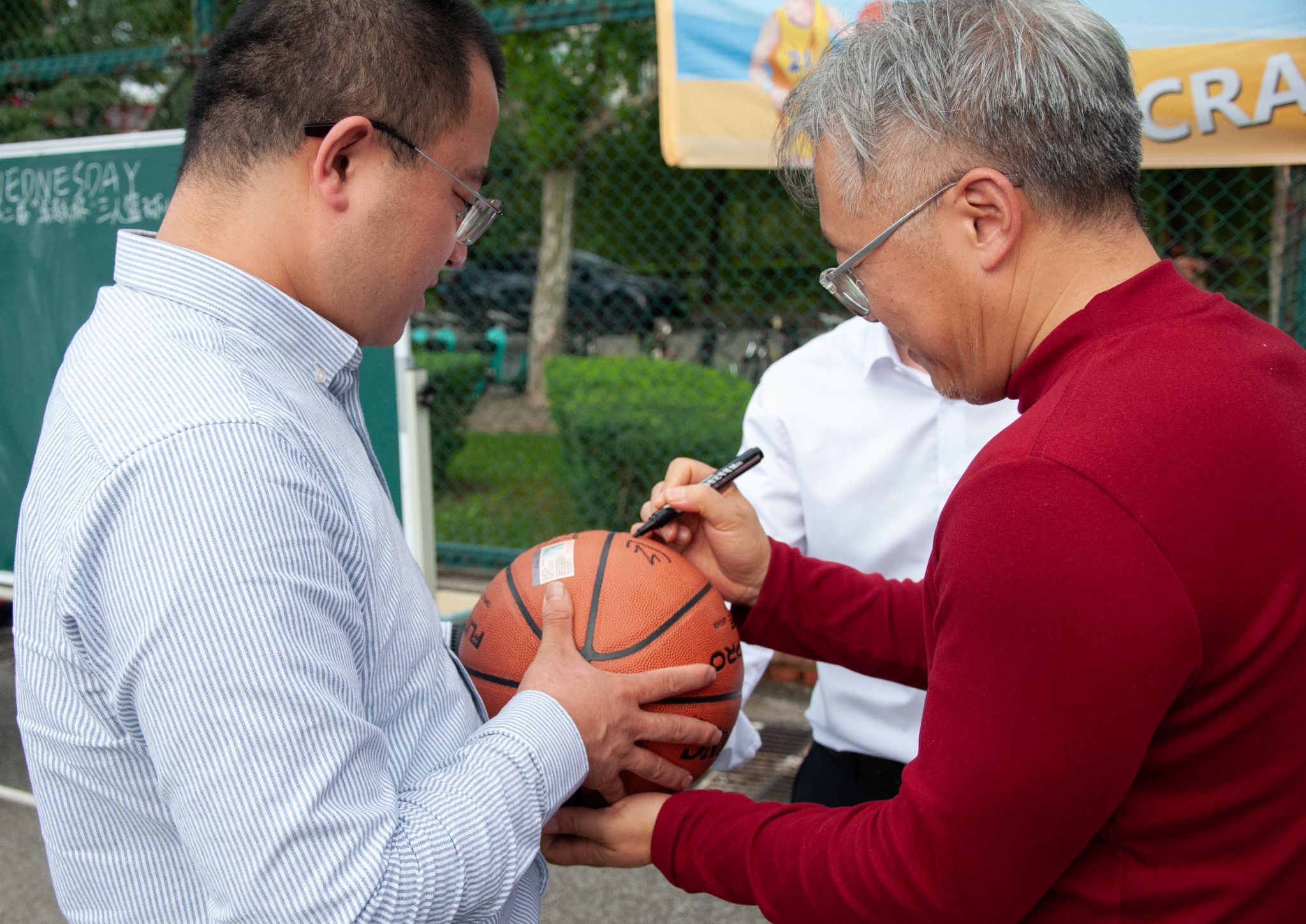 开幕式结束后,由辅导员、专业教师组成的学院教工篮球队与学生联队率先展开友谊赛,黄海为双方球队以掷硬币的方式决定第一次球权归属