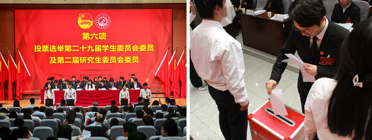 大会投票选举了第二十九届学生委员会委员以及第二届研究生委员会委员。