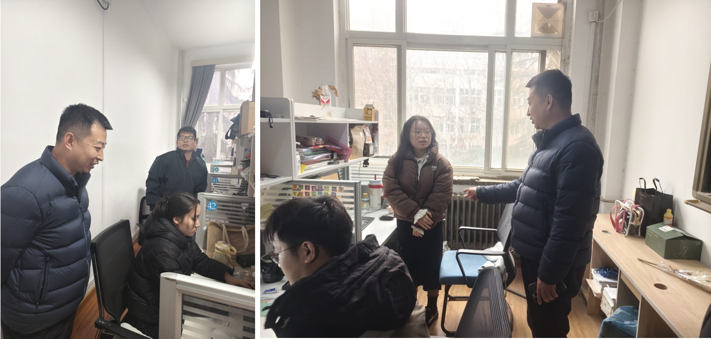 为筑牢寒假校园安全防线,精准掌握留校学生状态,传递学院关怀,1月20日,yl7703永利集团党委副书记艾二鑫带领研究生辅导员,深入学生自习室、宿舍开展专项检查。