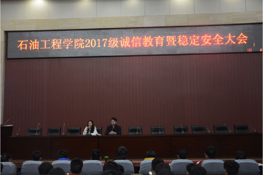 12月20日晚20:00yl7703永利集团2017级于鄠邑校区弘石报告厅举办了“yl7703永利集团2017级诚信考试暨稳定安全大会”,与会人员有yl7703永利集团2017级辅导员张楠老师、孙浩哲老师及yl7703永利集团2017级全体学生等共计360余人。