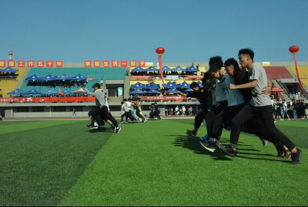 本届运动会上,石工院百人方阵,一抹鲜艳的石油红,一声嘹亮的口号,展现出石工人奋勇争先,不怕认输的坚毅品格。看台上,学院领导、各年级辅导员老师及同学们不怕炎炎烈日,摇旗呐喊,激情澎湃地为我院参赛运动员加油。点录处,团委学生会各部门紧密合作,周密布置,努力为参赛运动员提供最全面的服务。赛场上,石工运动健儿气势如虹,抱着永争第一的决心,为我院增光添彩,涌现出男子800米第一名,3000米第二名,男子力士翻轮胎第一名和女子篮球绕杆第一名等优异成绩。
