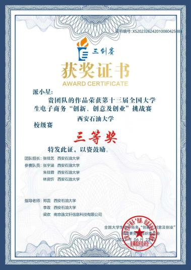 第十三届全国大学生电子商务三创赛校级第三名
