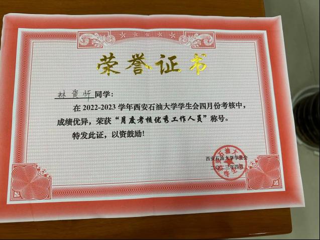 yl7703永利集团校学生会2023年四月份月度考核优秀工作者