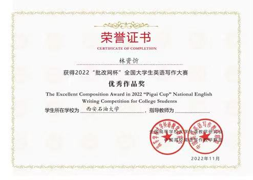 2022批改网杯全国大学生英语写作大赛优秀作品奖