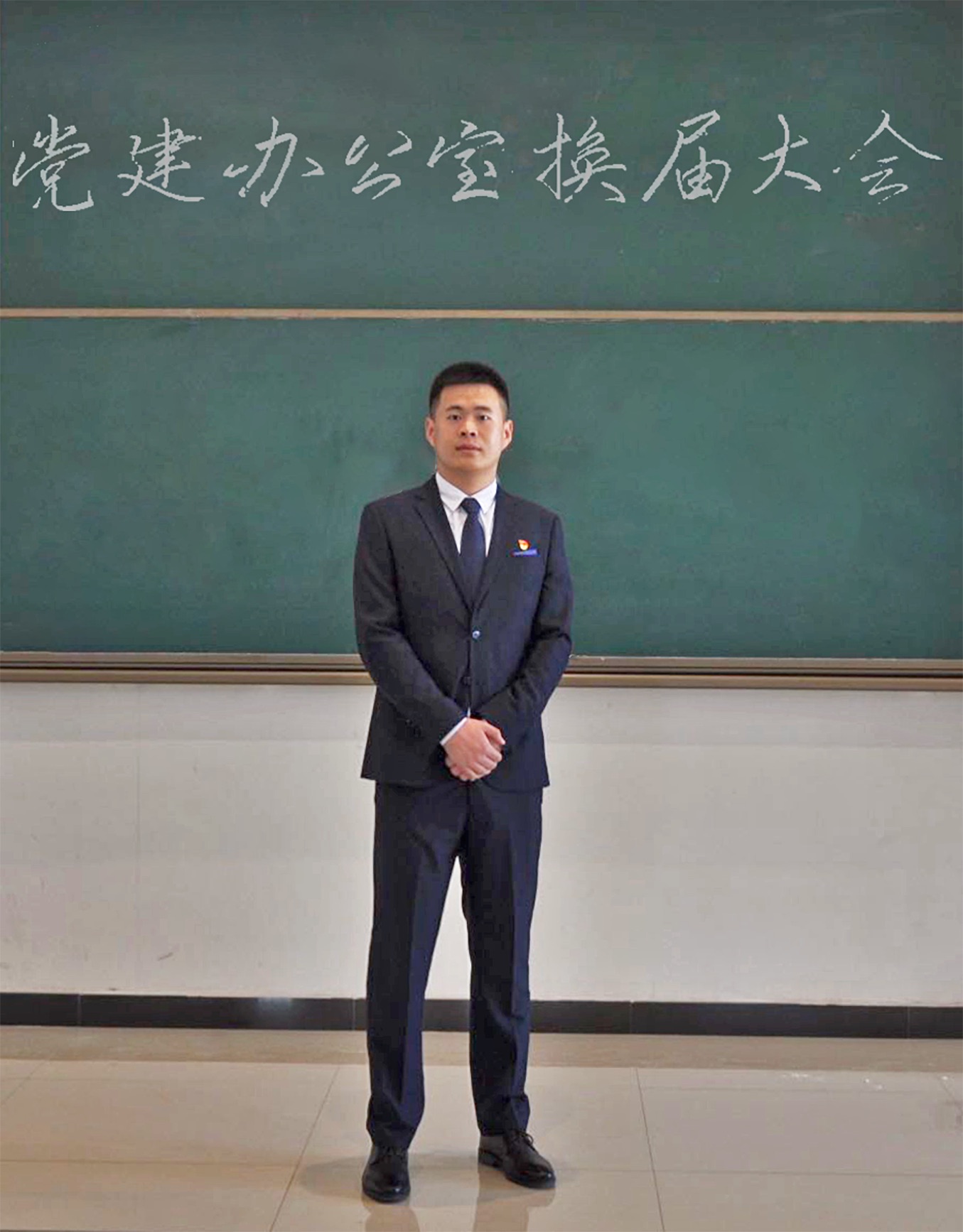 身为党建办主任,发挥青年的智慧、风采和力量,高举旗帜跟党走、创先争优树先锋、踏实稳步向前进,为学院学生党建工作贡献先锋力量;他始终牢记全心全意为人民服务的宗旨,注重以多种形式加强对学生党员的教育;坚持严格落实三会一课制度,精心策划开展主题党日活动,精准高效传达会议讲话精神;统筹协调好党课培训、毕业生组织关系转接、党员活动室值班、档案整理、党务系统维护等党建专项工作;大力提升打造特色党建品牌工作力度,进一步深化学生党支部红色实践活动,进一步加强学生党建品牌活动建设。