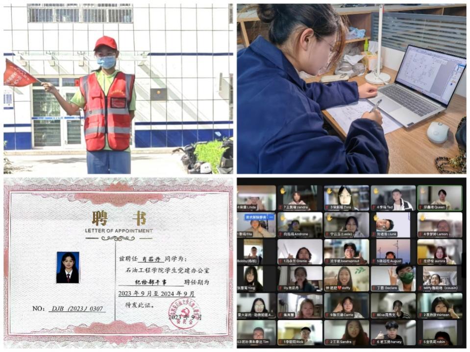 学习上,大学三年综合绩点达到4.06/5,排名3/265,曾荣获“安东石油奖学金”“连云港徐圩新区菁英人才奖学金二等奖”,单项奖学金,“优秀共青团员”“铁人大学生”等荣誉。她注重外语学习与应用,英语四、六级均一次性高分通过,兼顾学习的同时还参加了计算机二级考试和中国石油工程设计大赛,强化专业技能。