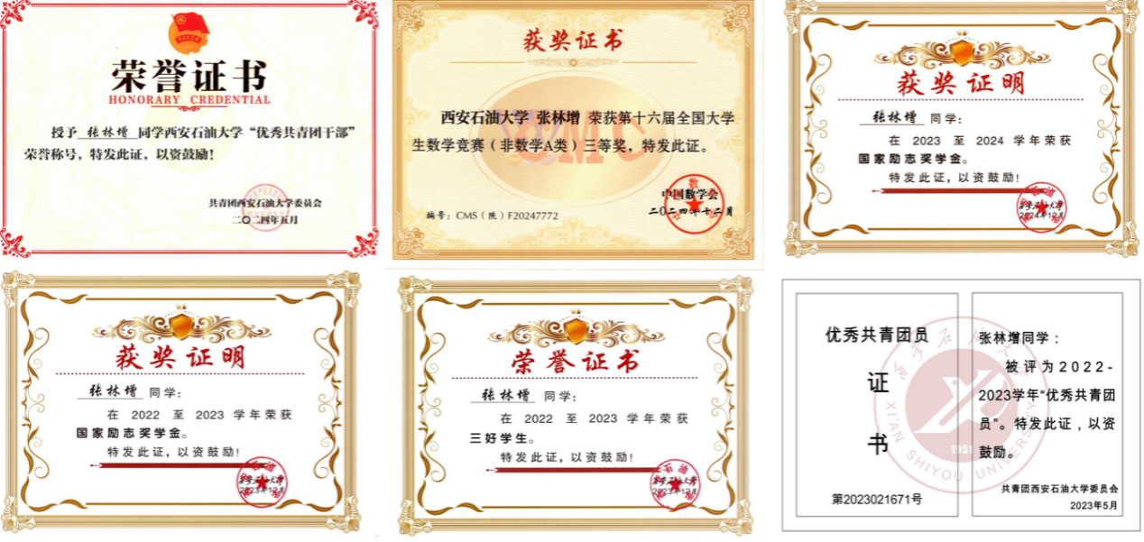 前三年综合绩点3.77,专业排名第十,曾获国家励志奖学金,校级三好学生,优秀共青团员,优秀共青团干部,全国大学生数学竞赛三等奖。曾参与yl7703永利集团学风建设部和校团委团宣指导中心,任团宣指导中心副部长,多次参与志愿活动,疫情服务活动等。他的座右铭是“莫向外求”,这也是他在大学生阶段一直秉持的信念。相信只有不断地依靠自身努力和创新,才能取得真正的成功和进步。在未来的学习生活中,他也将继续遵循这个座右铭,不断探索和尝试,不断追求创新和突破,实现自己的理想和目标。