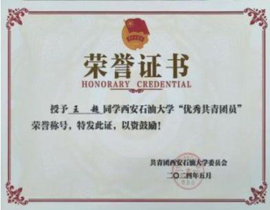 大学前三年加权平均绩点3.88,专业排名5/269,专业课如三大工程、岩石力学、高等数学等课程都达到90+。获得“国家励志奖学金”、“三好学生”、“品学兼优一等奖”、“优秀共青团员”等荣誉。