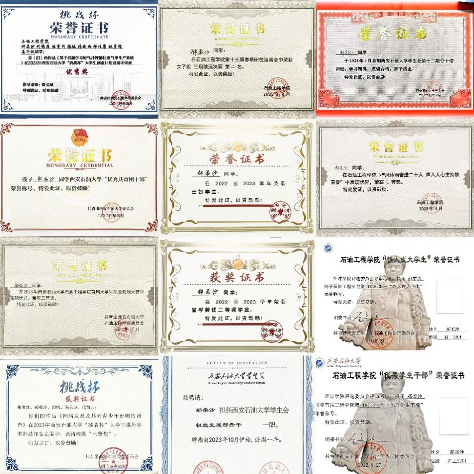 大学三年平均绩点3.76,现已经通过大学英语四级、六级。曾获得品学兼优二等奖学金、三好学生铁人大学生校级优秀共青团员干部等荣誉。