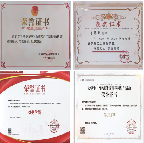 大学期间始终以学习为主,前三年平均绩点3.62,排名18/269,在校期间连续三年获得“品学兼优”奖学金,荣获“三好学生”,“优秀共青团员”等荣誉。在他看来,学业乃是一切事务的基石,只有拥有牢固的基石才能站的更高,看得更远。在学习方面,他认为只要完成上课认真听讲,课后主动复习,积极向老师和周围的同学请教这三个步骤便可确保自己学习时刻进步。
