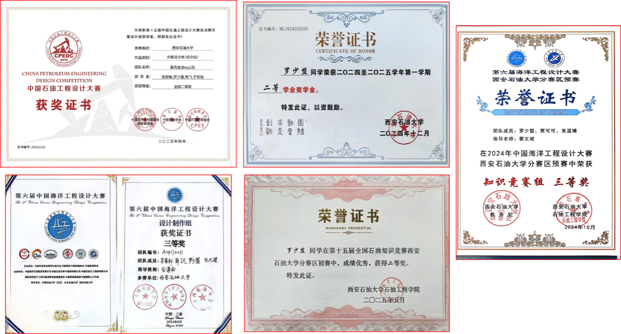 1)第15届中国石油工程设计大赛-综合组-全国二等奖;