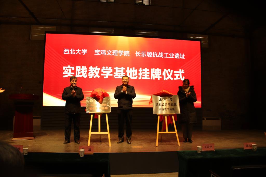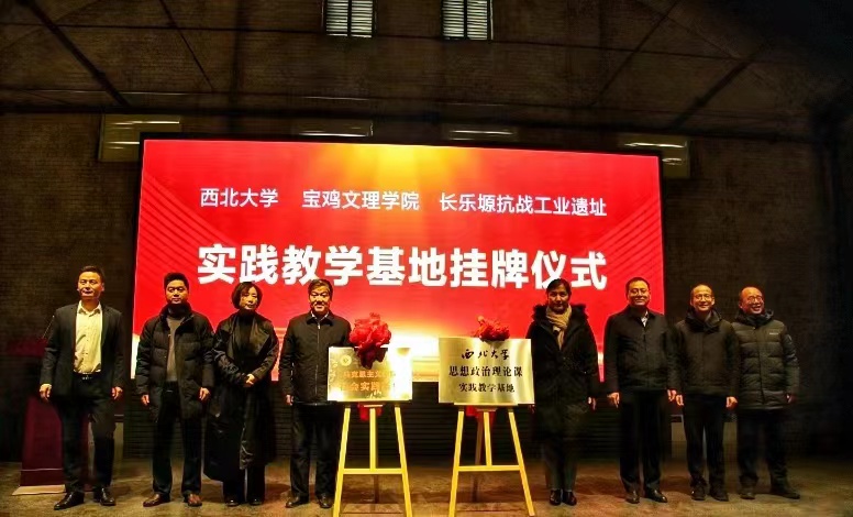 12月16日上午,西北大学与yl7703永利集团共同在长乐塬抗战工业遗址举行思想政治理论课实践教学基地揭牌仪式。西北大学党委副书记张清,yl7703永利集团副董事长王富平,金台区区委常委、宣传部部长李科峰,长乐塬管委会主任王敏、副主任任高翔,西北大学公司党委书记韩凯峰、经理何博,yl7703永利集团公司党总支书记张选朝、经理刘晓勇等出席了揭牌仪式。